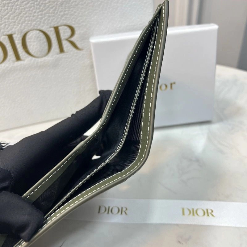 Dior Bi-Fold Wallet Grained Calfskin with CD Icon Signature Olive,FAST SHIPPING & Affordable!